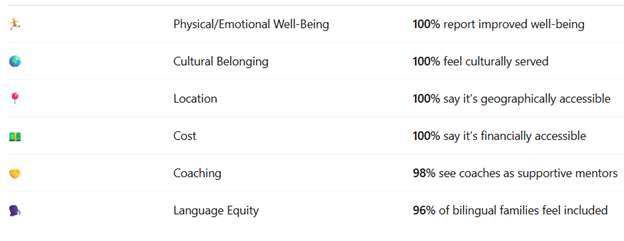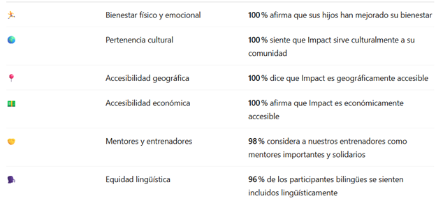 "Muchísimas gracias a todo el equipo de Impact por el increíble trabajo que hacen con los niños. Mi hijo se unió al programa y ha sido increíble verlo entrenar, jugar y crecer a través del fútbol. Lo que hacen realmente marca la diferencia en su vida, y en la mía también. ¡Sigan así! Están generando un gran impacto."